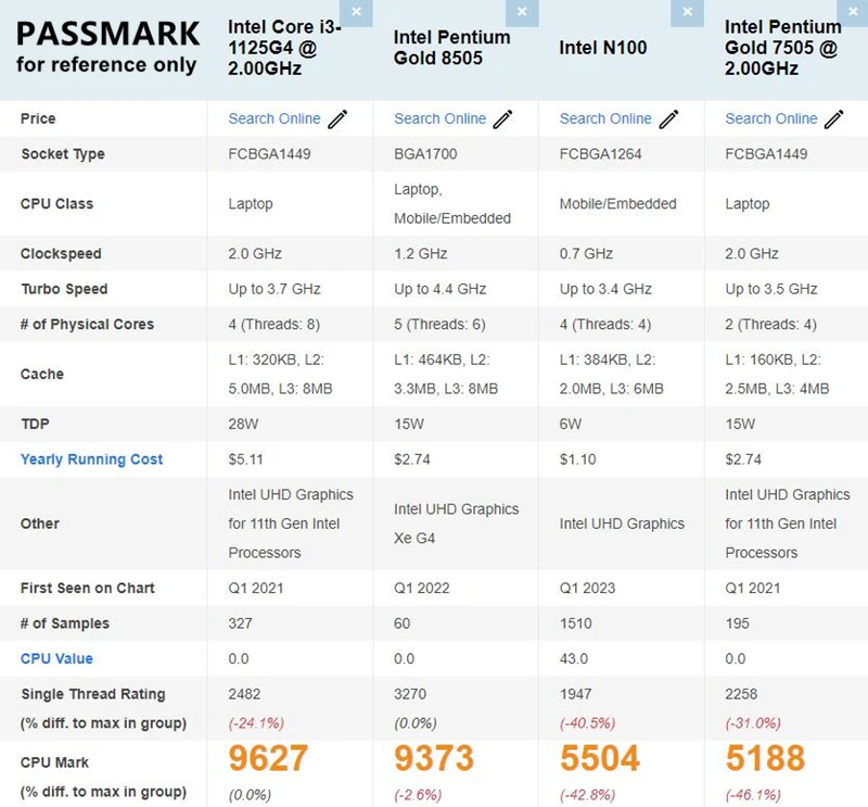 Modelo Core i3-1125G4/Pentium Gold 7505:
