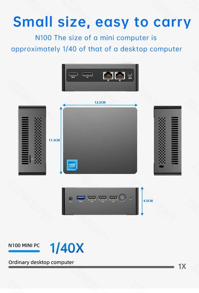 CPU: Intel N100 4 núcleos 4 hilos hasta 3,40 GHz 6MB de caché TDP 6W