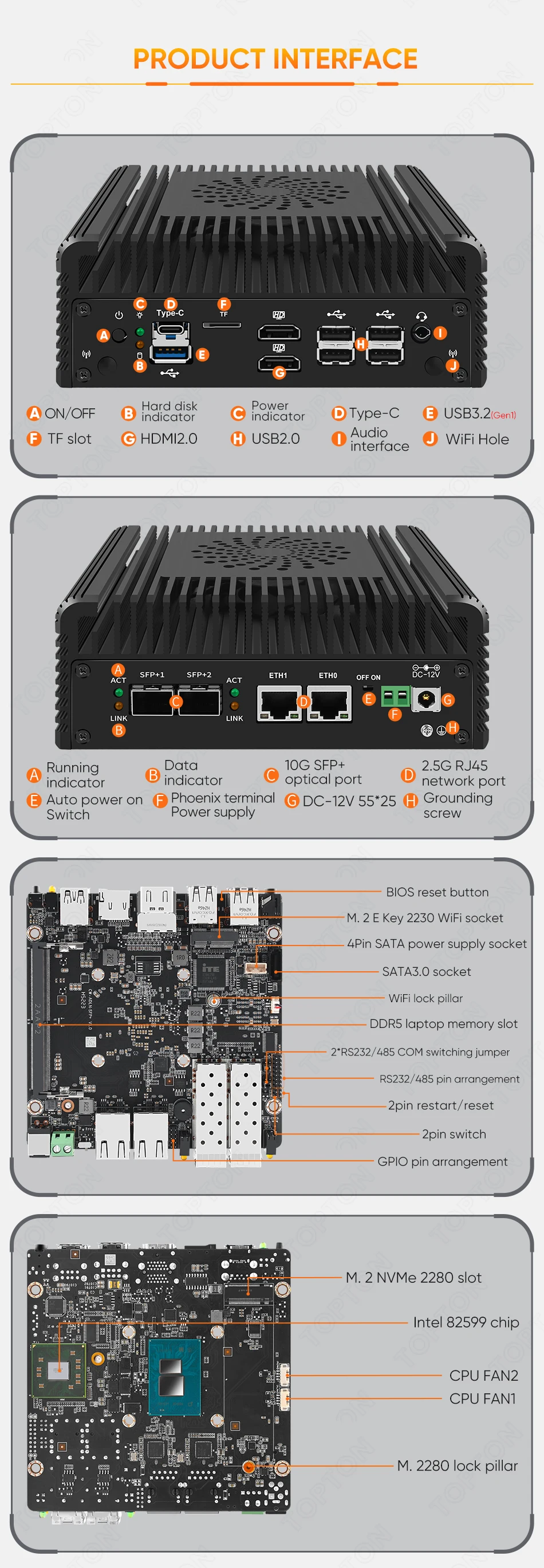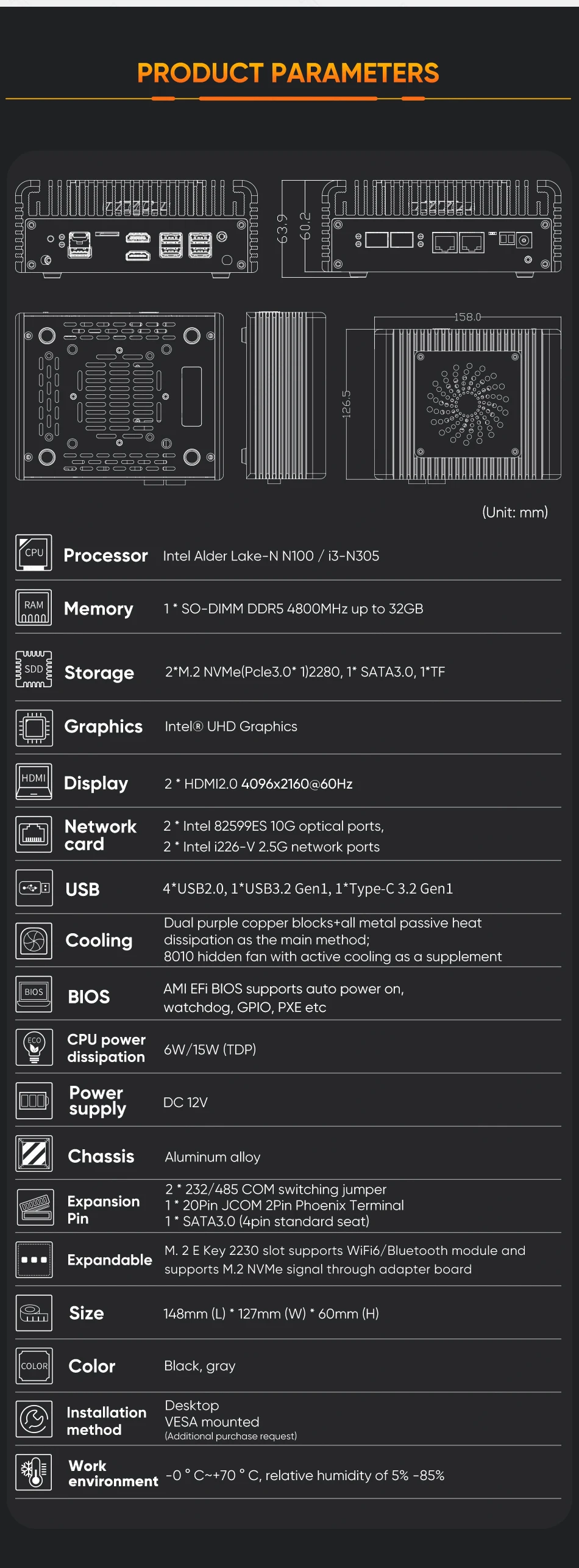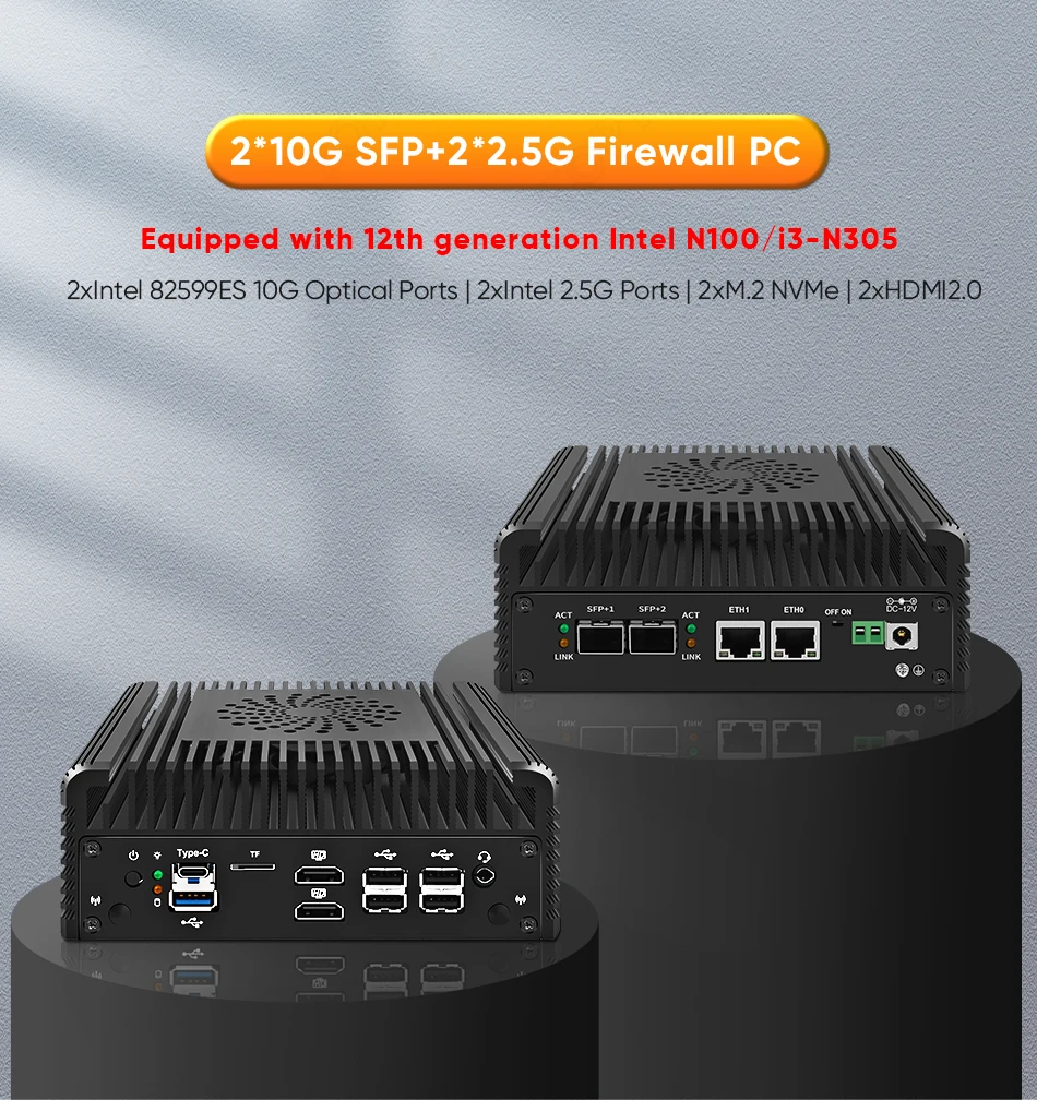 Nuevo Firewall Mini PC 2x10G SFP + 2xi226-V 2,5G Intel 3 N355 N305 N150 N100 enrutamiento suave 2xNVMe DDR5 MiniPC NAS servidor Proxmox