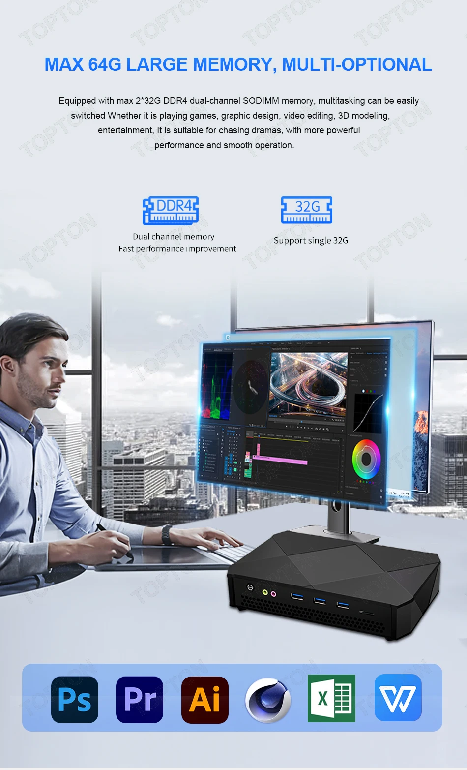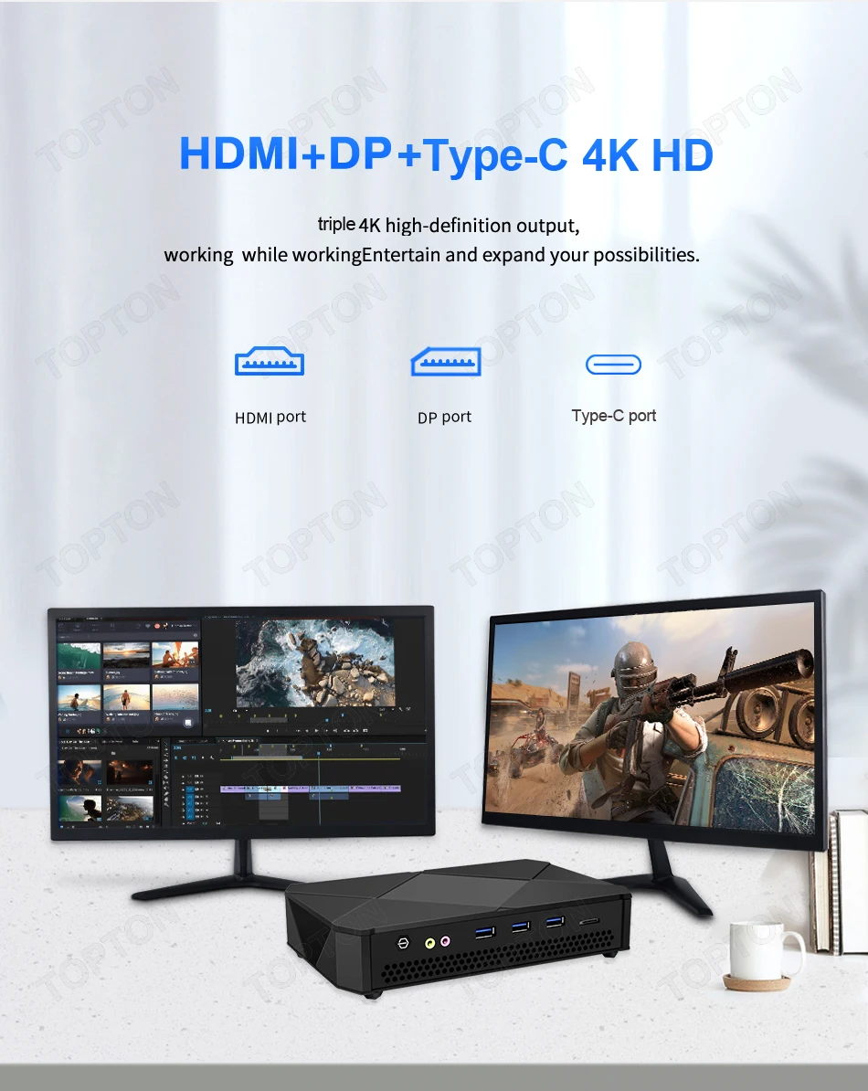 Topton-Mini PC Gaming i9 11900H AMD Ryzen 9 5900HX Windows 11, ordenador de escritorio Dual DDR4 NVMe SSD 3x4K UHD HTPC WiFi6